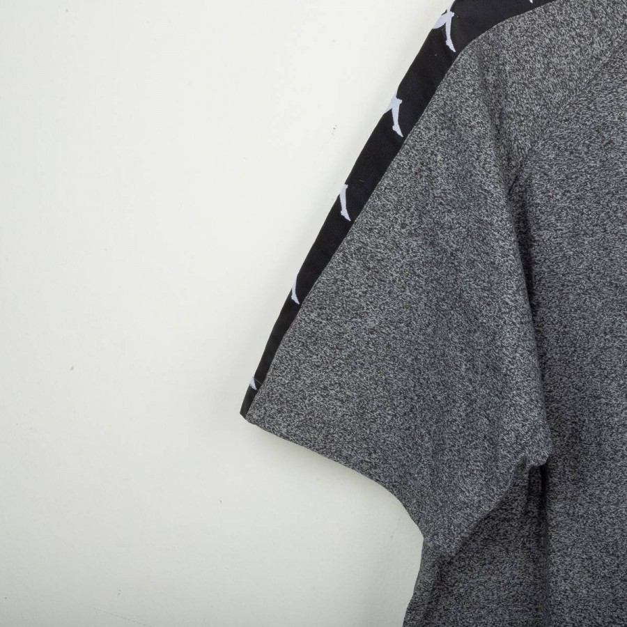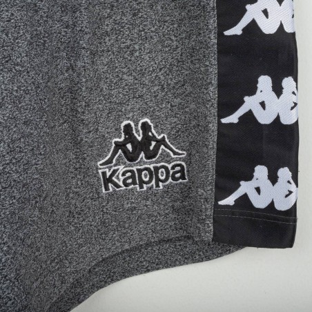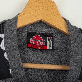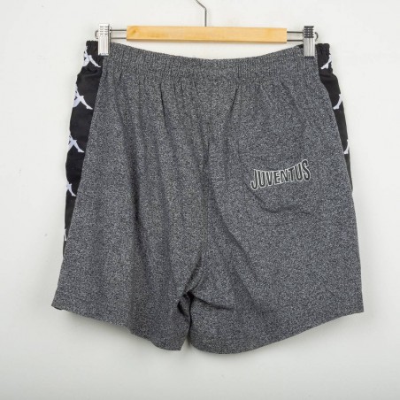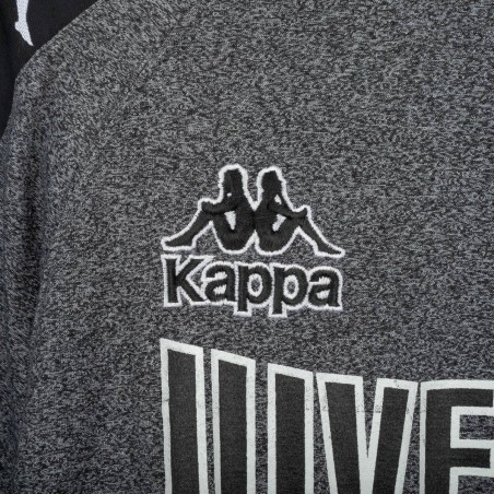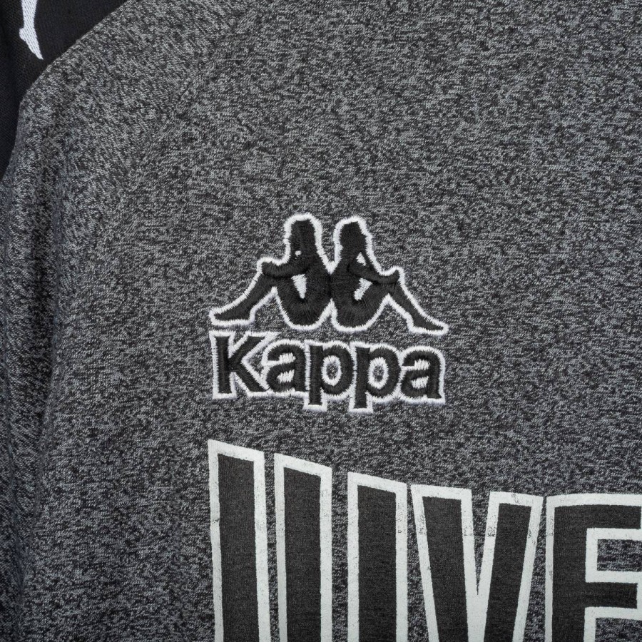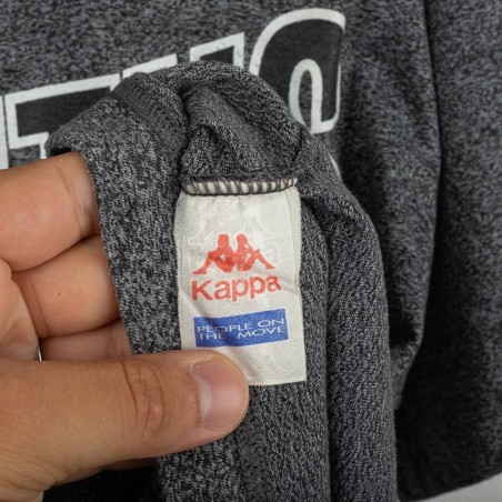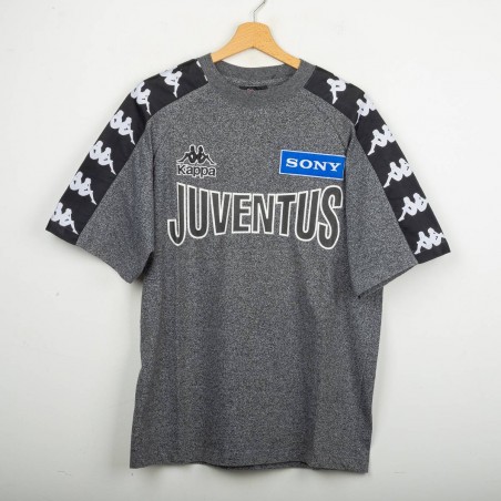 Kit allenamento Juventus della stagione 1996/1997, prodotto da Kappa. Completo composto da maglia e pantaloncini in tessuto grigio mélange, con bande nere sulle maniche e sui lati arricchite dal logo Kappa ripetuto. Sul fronte della maglia presenti scritta “JUVENTUS” stampata in bianco, logo Kappa ricamato e sponsor centrale Sony cucito a patch. Pantaloncini coordinati con logo Kappa ricamato sulla gamba destra e scritta “JUVENTUS” sul retro. Modello ufficiale della linea “Gara”, utilizzato dalla squadra durante le sessioni di allenamento nella stagione che vide la Juventus conquistare la Champions League.