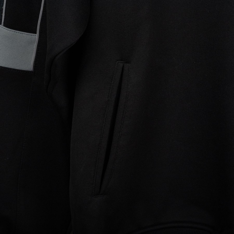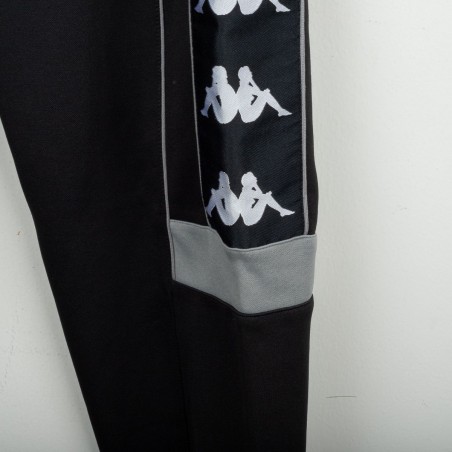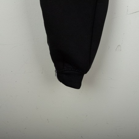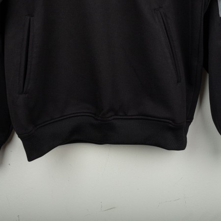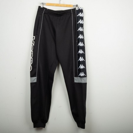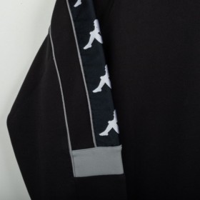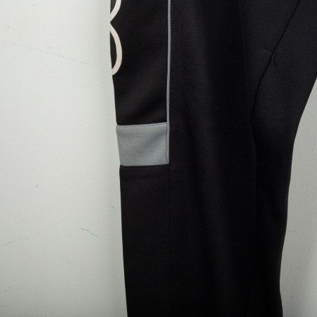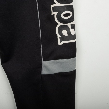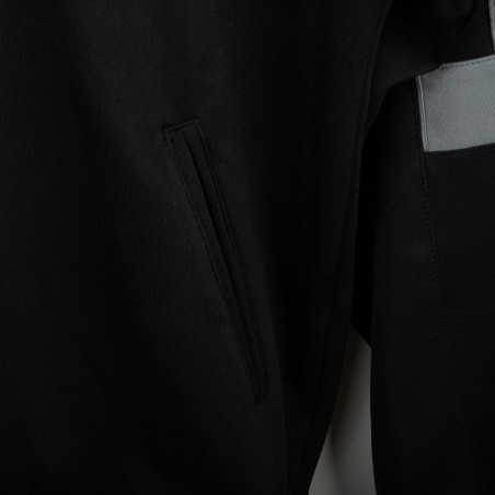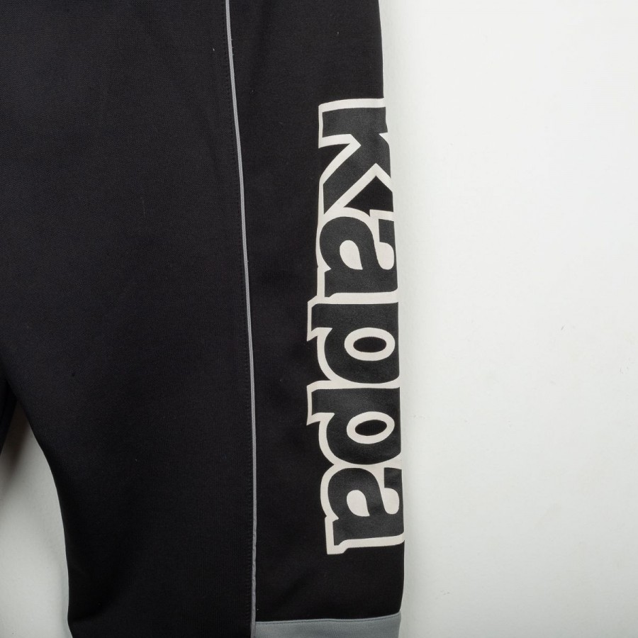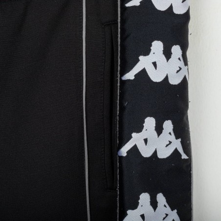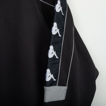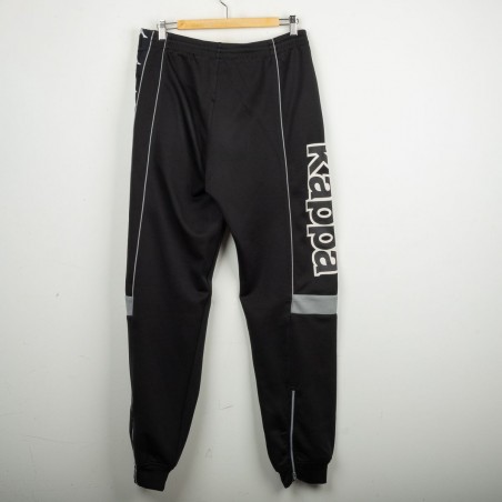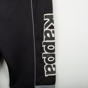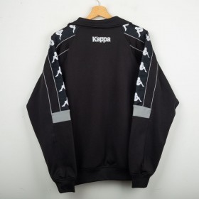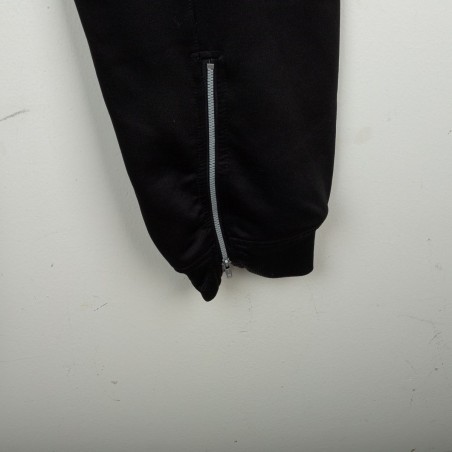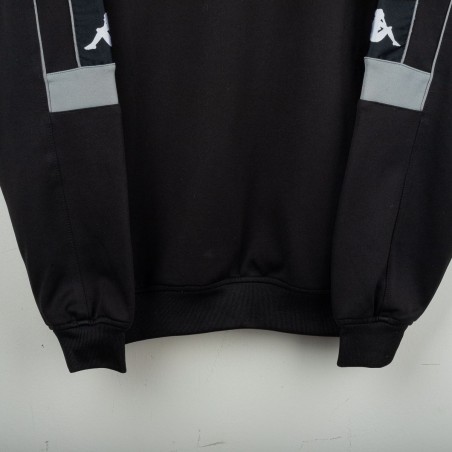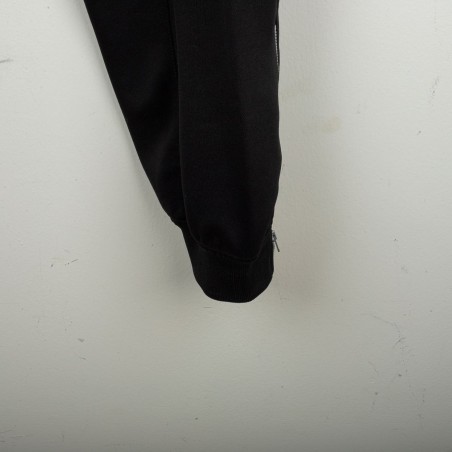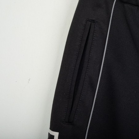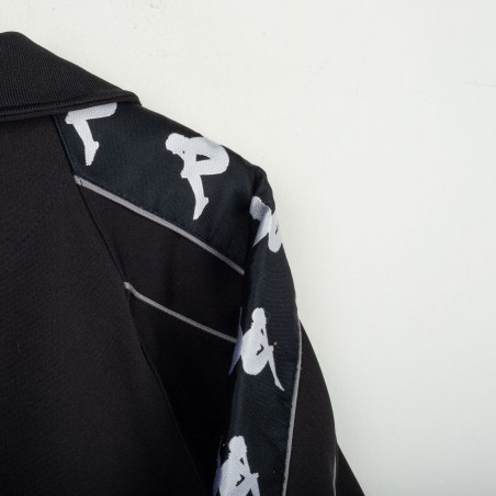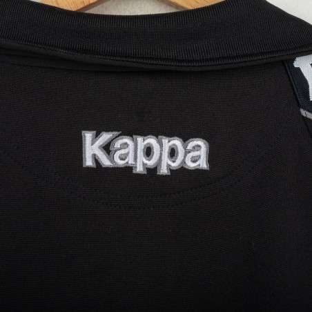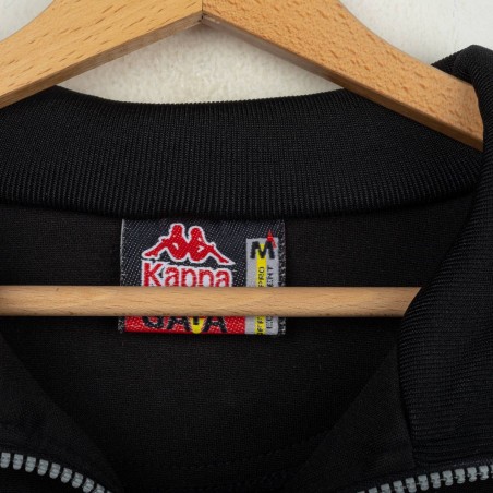 Tuta completa Juventus prodotta da Kappa per la stagione 1995/1996. Modello nero composto da giacca con zip e pantaloni coordinati. La giacca presenta la scritta “JUVENTUS” stampata sul petto, logo Kappa ricamato in bianco e sponsor Sony applicato a patch cucita. Bande Kappa applicate lungo le maniche e inserti grigi a contrasto. Sul retro ulteriore logo Kappa ricamato. Pantaloni con bande Kappa lungo i lati e grande scritta Kappa bianca sulla gamba. Parte della linea “Gara” ufficiale Kappa. Taglia M.
