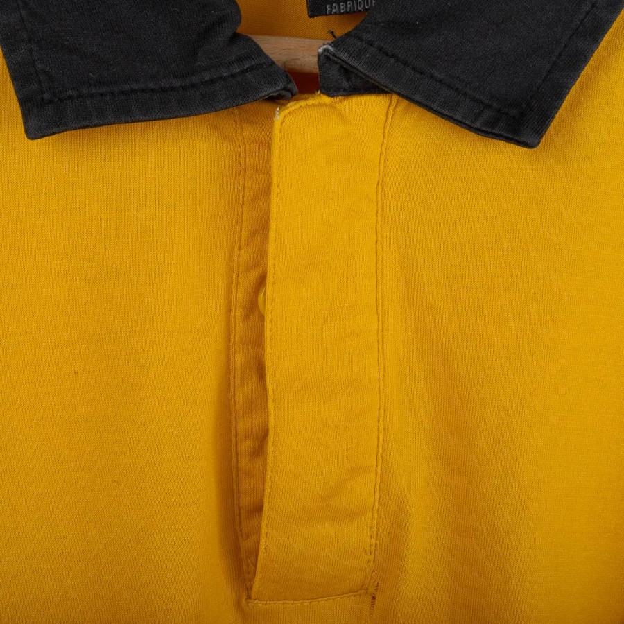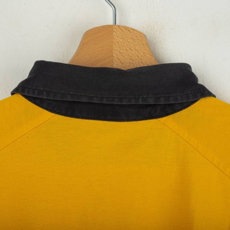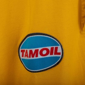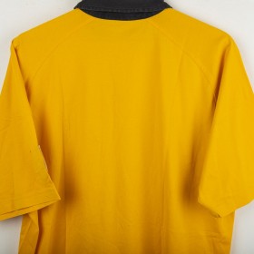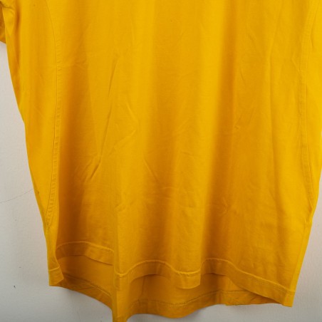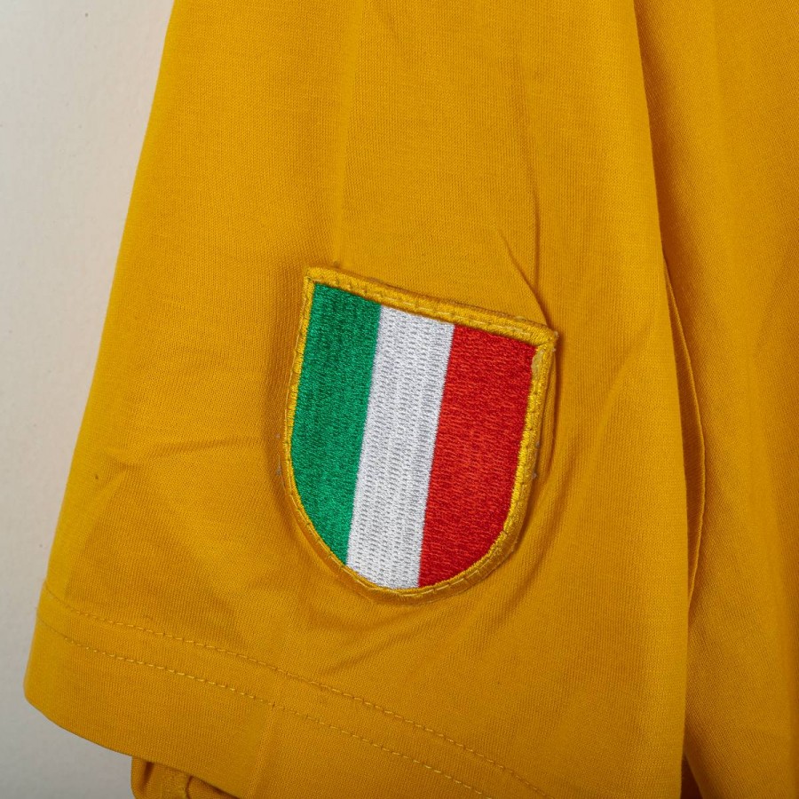 Polo ufficiale Juventus prodotta da Nike per la stagione 2003/2004, realizzata per le competizioni europee. Modello a maniche corte di colore giallo con colletto a polo nero. Stemma Juventus ricamato sul petto con due stelle e sponsor Tamoil cucito sul fronte. Patch Scudetto tricolore applicata sulla manica sinistra. Tessuto in cotone leggero, ideale per il tempo libero e le trasferte UEFA. Taglia L.