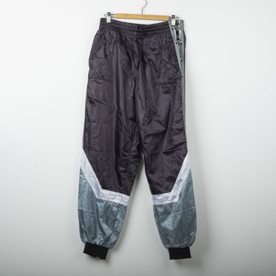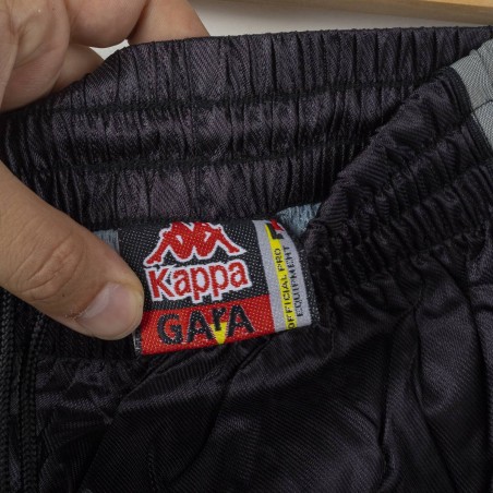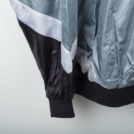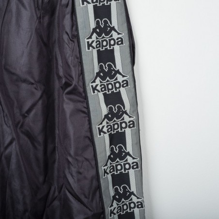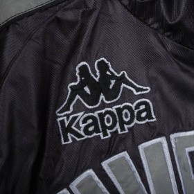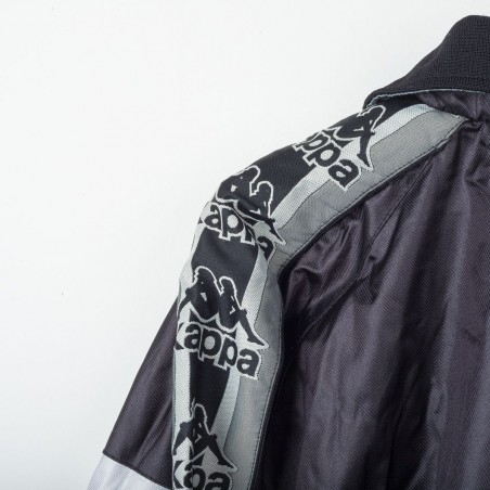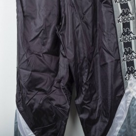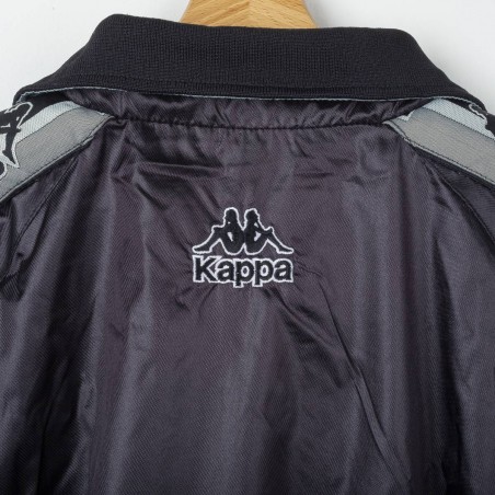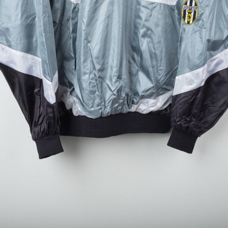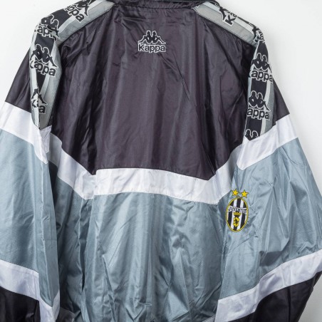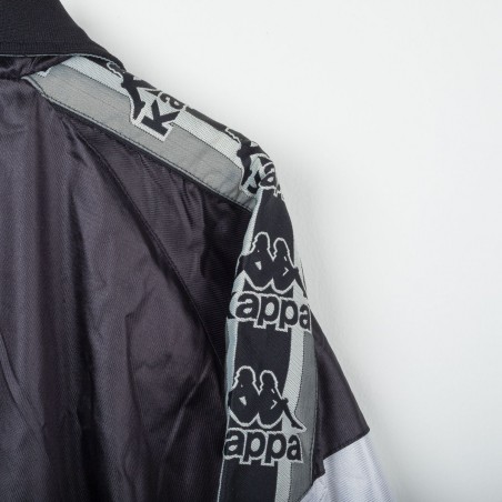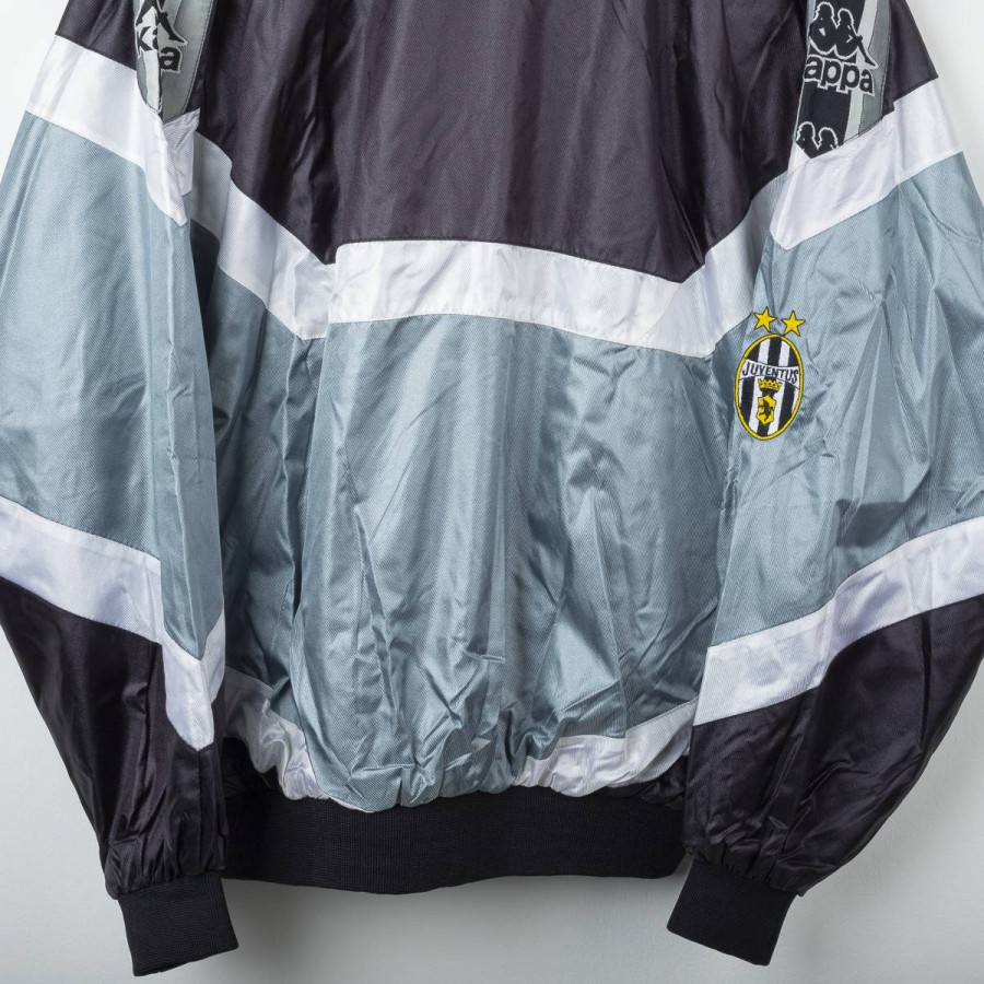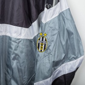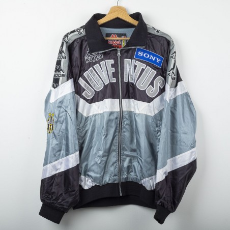 Tuta Juventus Kappa stagione 1995/1996, sponsor Sony. Prodotta da Kappa nella linea “Gara – Official Pro Equipment”, presenta i classici colori nero, grigio e bianco con dettagli in tessuto lucido tipici degli anni '90. La giacca mostra la grande scritta “Juventus” frontale con sponsor Sony ricamato sopra, stemma della Juventus con due stelle sul lato e loghi Kappa ripetuti sulle maniche. I pantaloni abbinati seguono lo stesso design, con inserti a contrasto e logo Kappa. Una tuta storica, legata a una delle stagioni più iconiche della storia bianconera, culminata con la vittoria della Champions League a Roma contro l'Ajax. Taglia L.