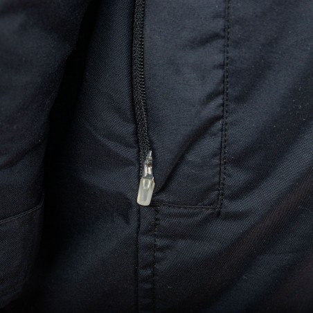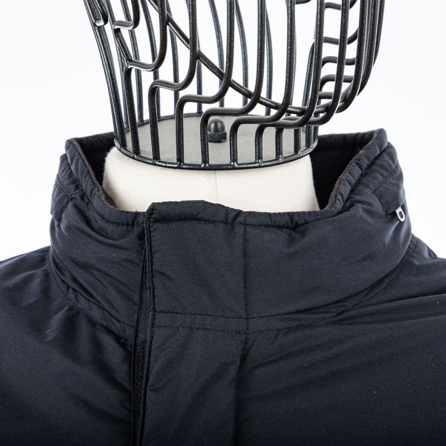 Giaccone imbottito lungo con chiusura a bottoni a pressione e tasche laterali con zip. Sul lato cuore è presente lo stemma ricamato della Juventus, mentre sulla destra lo sponsor tecnico Nike.
