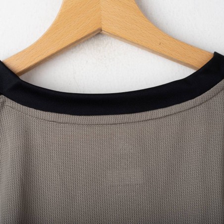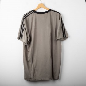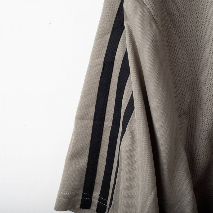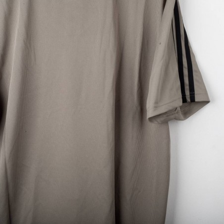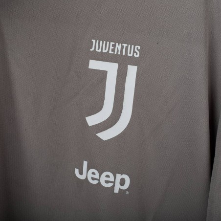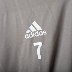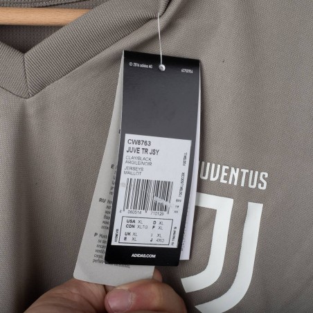 T-shirt da allenamento Juventus stagione 2017/2018 prodotta da Adidas. Realizzata in tessuto tecnico ClimaCool, presenta una colorazione “clay” con dettagli neri. Logo Adidas e numero 7 applicati sul petto a destra, stemma Juventus e sponsor Jeep applicati a sinistra. Tre strisce nere a contrasto lungo le spalle. Colletto a V rifinito in nero. Etichetta interna stampata, taglia XL.