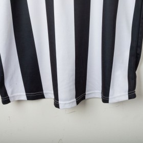 Maglia casalinga della Juventus stagione 2000/2001, prodotta da Lotto. Classico design a strisce bianconere, colletto a polo e dettagli neri. Sponsor TELE+ e logo Lotto applicati. Stemma Juventus cucito con due stelle. Nome "Del Piero" e numero 10 applicati sul retro in stile ufficiale. Vestibilità regolare, taglia XL. Prodotta in Italia.