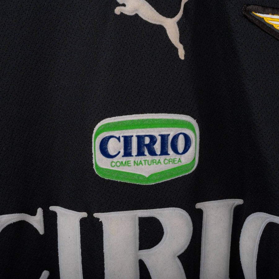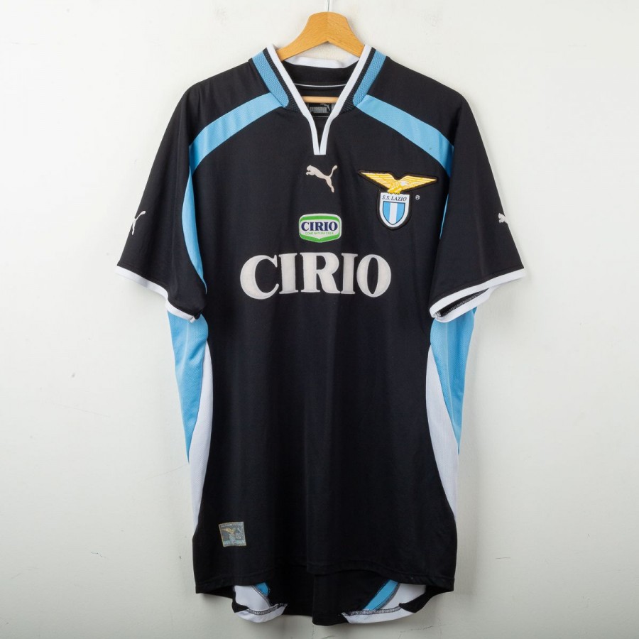 Maglia fourth della S.S. Lazio indossata nella stagione 1999/2000, prodotta da Puma per celebrare il centenario del club. Colore nero con inserti celesti e bianchi su spalle e fianchi. Logo Puma in bianco al centro del petto in flock, stemma S.S. Lazio cucito lato cuore. Sponsor CIRIO in bianco con dettaglio verde e blu in flock sul fronte. Sul retro, nome “Nesta” e numero 13 in celeste bordato di nero, con scritta “S.S. Lazio” ricamata all'interno del colletto. Vestibilità regolare. Taglia L.