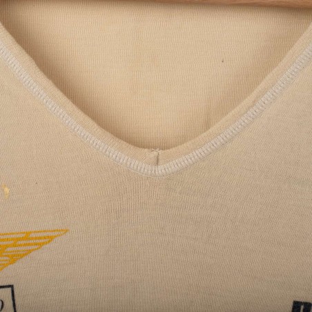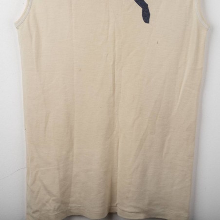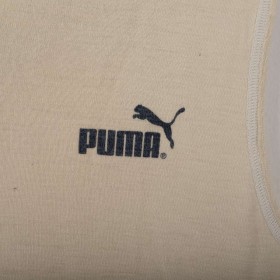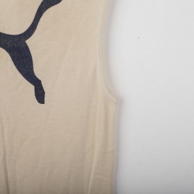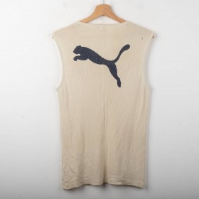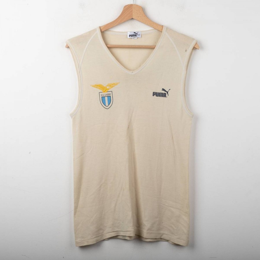 Canotta di allenamento della S.S. Lazio utilizzata nella stagione 1998/1999, prodotta da Puma. Colore beige con scollo a V e bordini in tinta. Logo Puma stampato in nero sul petto destro e grande logo Puma sul retro. Stemma S.S. Lazio stampato sul lato cuore. Tessuto leggero e confortevole, pensato per le sessioni di allenamento estive.