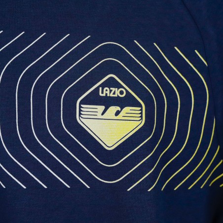 Felpa bambino con cappuccio della SS Lazio, prodotta da Mizuno. Colore blu con dettagli grafici in giallo fluo ispirati all'aquila stilizzata e scritta “S.S. Lazio” sul petto. Logo Mizuno stampato sul fondo. Modello comodo con tasca centrale a marsupio e cappuccio. Ideale per il tempo libero e per i giovani tifosi laziali.