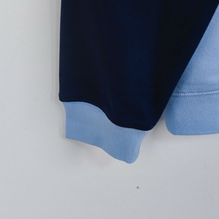 Felpa con cappuccio della SS Lazio per bambino, prodotta da Mizuno. Colore azzurro con maniche blu navy. Logo Mizuno stampato e stemma SS Lazio applicato sul petto. Tasca a marsupio anteriore e cappuccio regolabile. Un capo casual e sportivo ideale per i giovani tifosi biancocelesti.