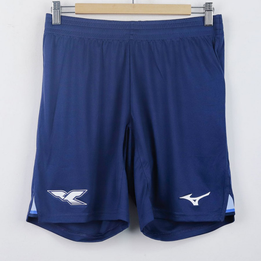 Pantaloncini ufficiali della S.S. Lazio realizzati dallo sponsor tecnico Mizuno in occasione del 125º anniversario del club, celebrato il 9 gennaio 2025. Questo modello si presenta in un elegante blu navy, con dettagli accurati che richiamano i colori sociali biancocelesti. Sul lato destro è presente il logo Mizuno, mentre sul lato sinistro si trova lo stemma della Lazio in versione retrò, entrambi applicati in bianco. I pantaloncini sono dotati di una vita elasticizzata con coulisse regolabile per il massimo comfort e si distinguono per l'inserto laterale in tessuto celeste e blu, che richiama la tradizione della squadra.