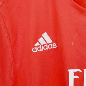 Maglia da portiere del Real Madrid realizzata dallo sponsor tecnico Adidas per la stagione 2017/2018. La maglia di colore rosso con inserti bianchi presenta lo stemma della squadra cucito, il logo dello sponsor tecnico adidas ricamato sul petto con le three striper che appaiono sulle spalle. Sponsor commerciale Fly Emirates. Taglia S.