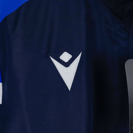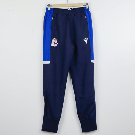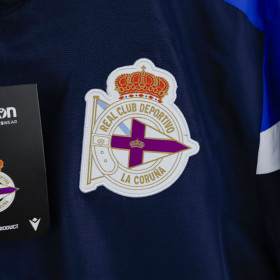 Tuta ufficiale del Deportivo La Coruña, stagione 2020/2021, prodotta dallo sponsor tecnico Macron. La tuta, di colore blu con dettagli bianchi e blu elettrico sulle spalle e sui pantaloni, presenta il logo Macron ricamato sul lato destro della giacca e lo stemma del Deportivo La Coruña ricamato sul lato cuore. I pantaloni abbinati riportano lo stemma del club sulla coscia destra. La tuta è dotata di zip centrale sulla giacca e cerniere sulle caviglie per i pantaloni, rendendola pratica e comoda. La taglia di questo modello è M.
