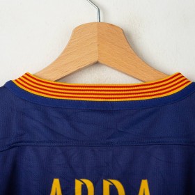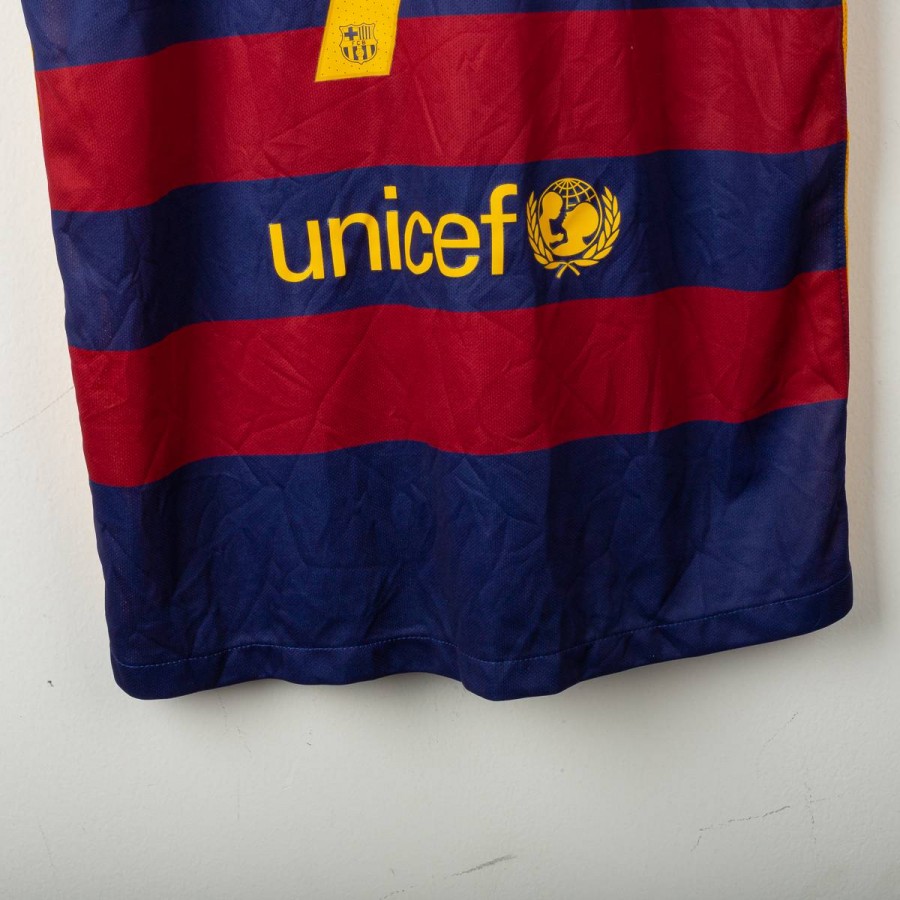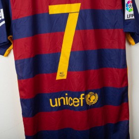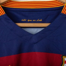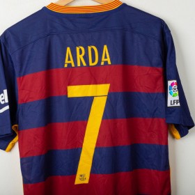 Maglia Home del Barcellona stagione 2015/2016, prodotta da Nike e dedicata ad Arda Turan con il numero 7. La maglia presenta i classici colori blaugrana a righe orizzontali, con inserti gialli ai lati e sul colletto. Lo sponsor tecnico Nike è visibile sul petto, insieme allo stemma ufficiale del club e allo sponsor commerciale Qatar Airways. Sul retro troviamo la personalizzazione "Arda 7", mentre sulle maniche sono applicate le patch ufficiali della Liga e di Beko. Taglia M.
