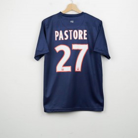 Maglia ufficiale home del Paris Saint-Germain per la stagione 2012/2013, prodotta da Nike. Il design è caratterizzato dal tradizionale colore blu navy con due strisce verticali rosse e bianche al centro della divisa. Lo stemma del club è cucito sul petto a sinistra, mentre il logo Nike è ricamato sulla destra. Lo sponsor principale, Fly Emirates, è stampato in bianco sulla parte frontale. Sul retro della maglia sono presenti il nome "Pastore" e il numero 27, utilizzato dall'argentino Javier Pastore.