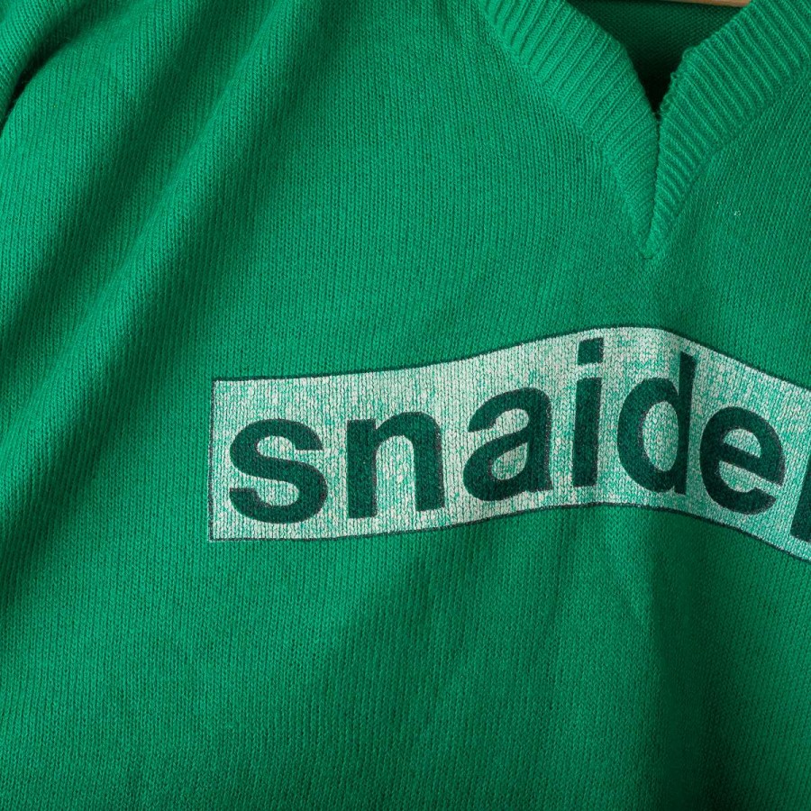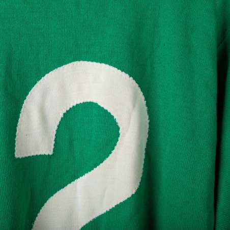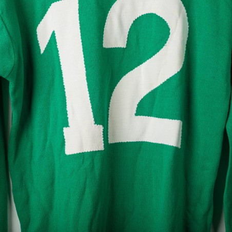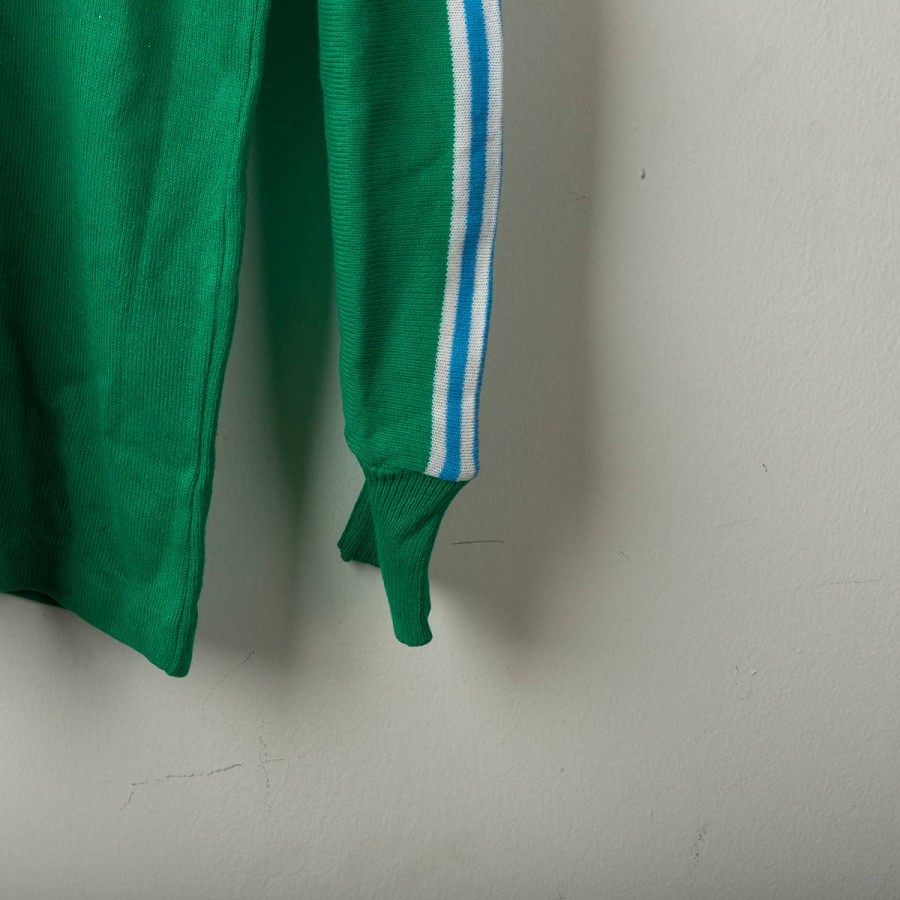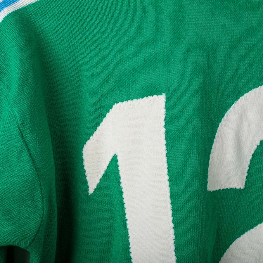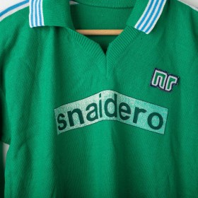 Maglia da portiere del Napoli, stagione 1981/1982, prodotta da Ennerre. Colore verde classico con maniche lunghe e colletto a costine con righe bianco-azzurre. Logo Ennerre cucito sul petto accanto allo sponsor Snaidero stampato in bianco. Spalle con bande bianco-azzurre lungo le maniche. Numero 12 applicato in feltro bianco sul retro e cucito a zig-zag.