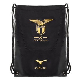 Sacca ufficiale SS Lazio realizzata da Mizuno in edizione speciale per celebrare il decimo anniversario della storica vittoria del 26 maggio 2013. Design elegante in nero con dettagli dorati, stemma della Lazio e logo Mizuno. Leggera, resistente e pratica, dotata di chiusura a coulisse e spallacci regolabili. Perfetta per palestra, sport e tempo libero, pensata per i veri tifosi biancocelesti.
