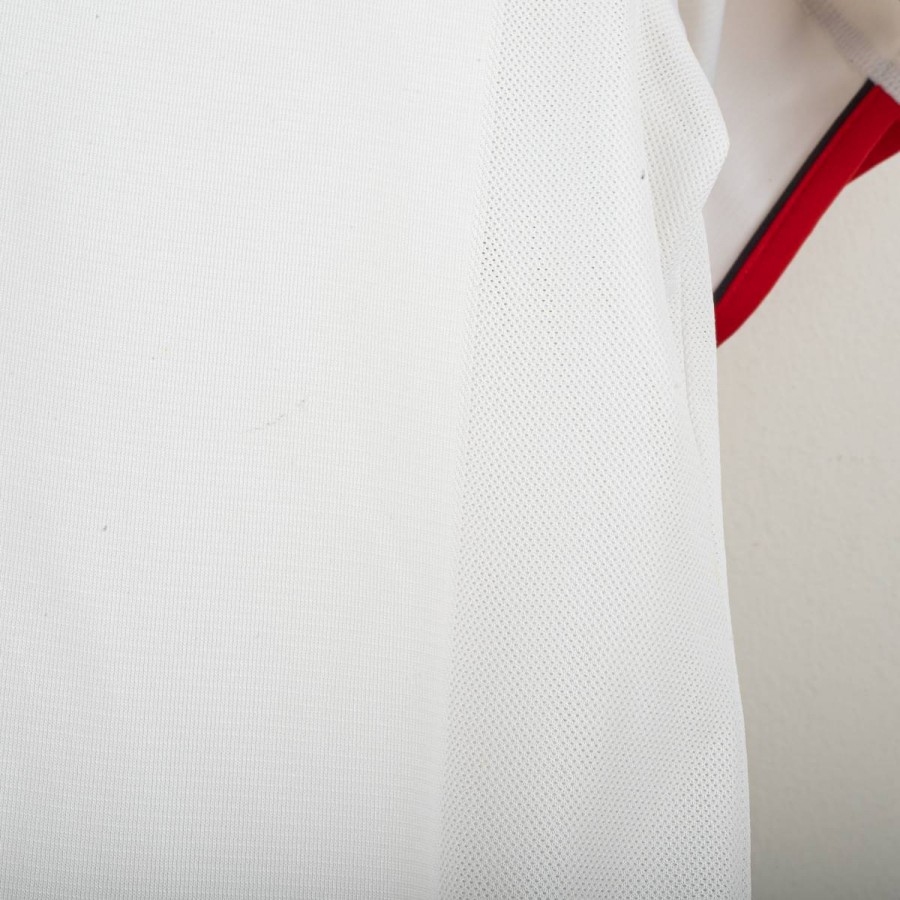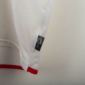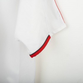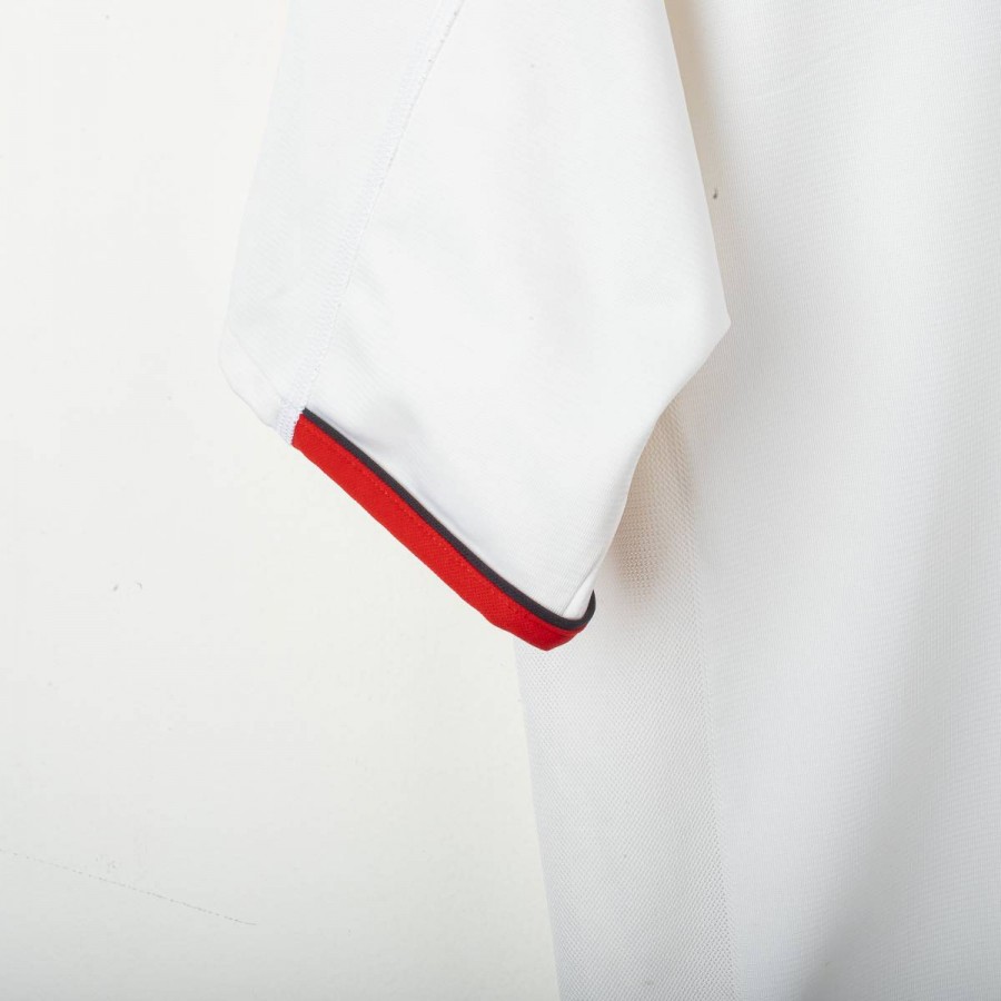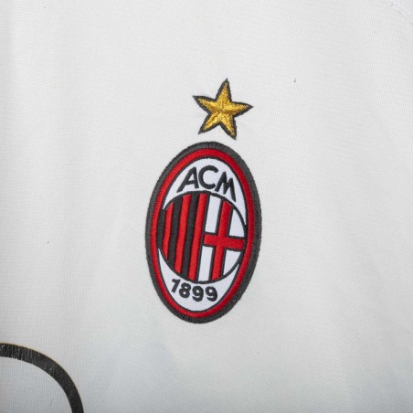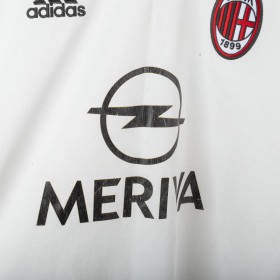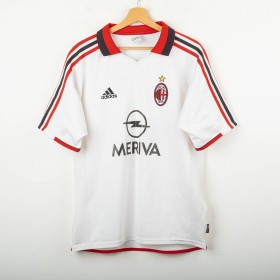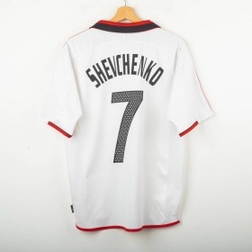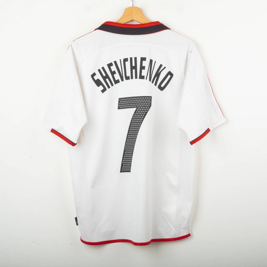 Maglia away del Milan utilizzata nella stagione 2003/2004 prodotta da Adidas. Colore bianco con dettagli rossoneri e logo Adidas ricamato sul petto. Stemma del Milan con stella dorata applicato lato cuore. Sponsor Opel Meriva stampato al centro. Tecnologia ClimaLite per una migliore traspirabilità. Nome "Shevchenko" e numero 7 applicati sul retro in stile originale dell'epoca. Taglia M.