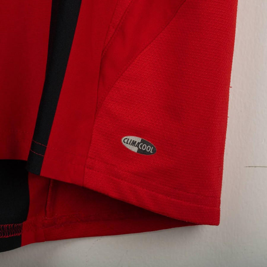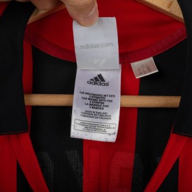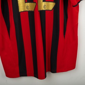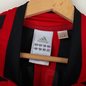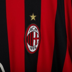 Maglia home del Milan della stagione 2005/2006, prodotta da Adidas. Classico design rossonero a strisce verticali con dettagli neri e rossi. Logo Adidas ricamato sul petto destro, stemma del Milan cucito lato cuore con stella dorata celebrativa dei successi nazionali ed europei. Sponsor Opel Zafira stampato al centro. Sul retro nome e numero Kakà 22 in stampa dorata. Tecnologia ClimaCool per una migliore traspirabilità. Taglia XL.