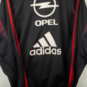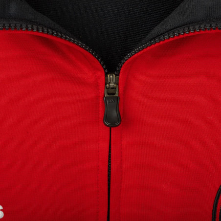 Giacca da tuta del Milan utilizzata nella stagione 2004/2005, prodotta da Adidas. Colore rosso e nero con inserti a contrasto e tre strisce rosse sulle maniche. Logo Adidas ricamato sul petto destro, stemma del club cucito lato cuore con stella gialla superiore e sponsor Opel ricamato al centro. Sul retro, grandi loghi Opel e Adidas stampati in bianco. Chiusura a zip integrale e tasche laterali con zip. Polsini e fondo elasticizzati. Taglia L.