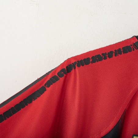 Maglia ufficiale home dell'AC Milan per la stagione 2004/2005, realizzata dallo sponsor tecnico Adidas. Il design classico a strisce verticali rossonere è reinterpretato con un effetto sfumato nella parte inferiore. La maglia presenta maniche corte, colletto a V e dettagli neri sulle spalle. Sul petto sono applicati il logo Adidas, lo stemma del club con stella dorata e lo sponsor commerciale Opel. Sul retro compaiono nome e numero 3 di Paolo Maldini in finitura dorata, con lo stemma del Milan alla base del numero. Taglia: XL, come indicato sull'etichetta interna.