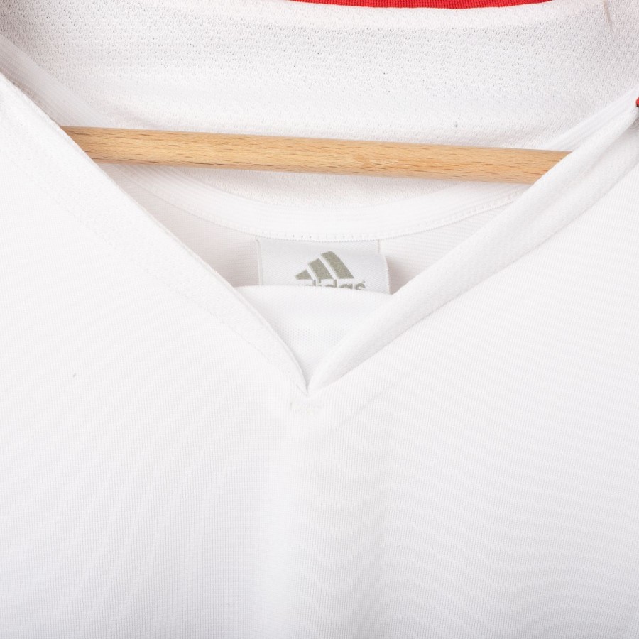 Maglia Away Milan Adidas Kakà 22 2005/2006. Realizzata da Adidas in colorazione bianca con dettagli rossoneri su spalle e colletto, questa maglia presenta uno stile elegante e pulito, simbolo delle trasferte europee del Milan. Lo sponsor tecnico è Adidas, mentre lo sponsor commerciale è Opel Zafira. Sul retro sono presenti il nome Kakà e il numero 22. La taglia indicata è 2XL.