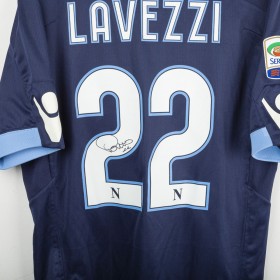 Colore blu navy con dettagli azzurri. Sponsor tecnico Diadora ricamato sul petto. Sponsor principale Lete applicato in stampa sublimatica al centro. Stemma SSC Napoli cucito lato cuore. Retro con nome Lavezzi e numero 22 in stampa bianca bordata di azzurro. Patch Serie A TIM applicata sulla manica. Vestibilità regolare. Maglia storica e da collezione, legata al ritorno del Napoli nel grande calcio con il talento argentino.
