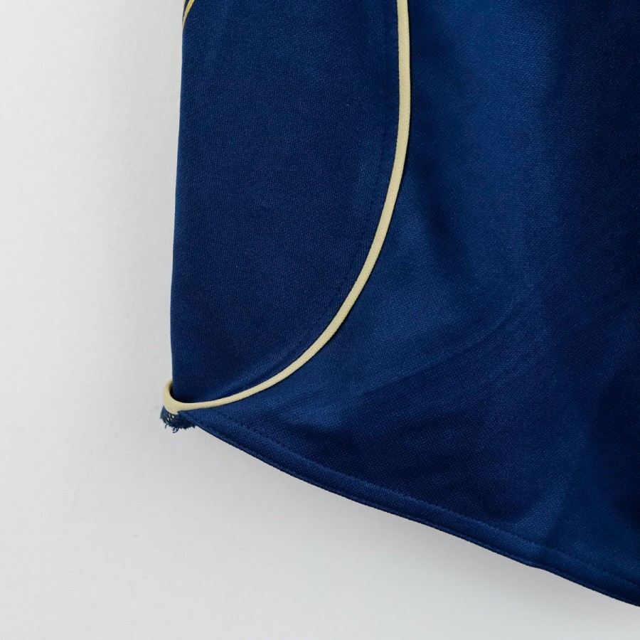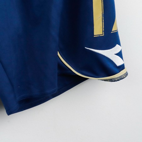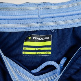 Pantaloncini third del Napoli stagione 2008/2009, prodotti da Diadora e preparati per il numero 17. Modello ufficiale da gara, colore blu con dettagli in oro. Logo Diadora ricamato, stemma SSC Napoli cucito sulla gamba. Numero 17 applicato in stampa dorata. Taglia M.