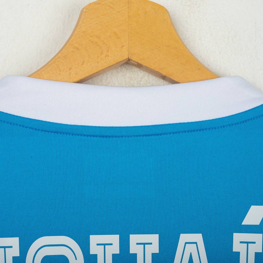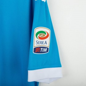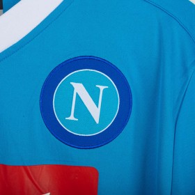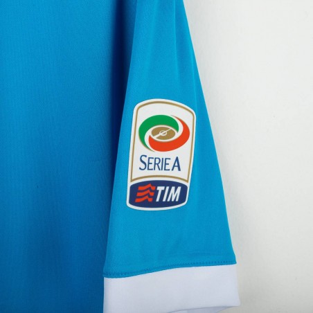 Maglia home del Napoli utilizzata nella stagione 2015/2016, prodotta da Kappa. Colore azzurro con colletto a V bianco e dettagli a contrasto. Logo Kappa stampato sul petto e sulle maniche, stemma SSC Napoli cucito lato cuore. Sponsor Lete e Garofalo stampati sul fronte. Patch ufficiale Serie A TIM applicata sulla manica destra. Sul retro nome e numero Higuaín 9 in stampa bianca. Vestibilità aderente con tecnologia Kombat per massimo comfort e traspirabilità. Taglia L. Maglia iconica legata alla straordinaria stagione del bomber argentino, autore di 36 gol in Serie A.