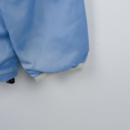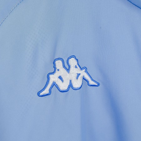 Giacca ufficiale del Napoli, stagione 2005/2006, prodotta dallo sponsor tecnico Kappa. Di colore azzurro chiaro, questa giacca presenta il logo Kappa ricamato su entrambe le maniche e il petto destro, mentre sul lato cuore è applicato lo stemma del club. Dotata di chiusura a zip integrale, colletto alto e orlo regolabile con cordoncino, questa giacca è stata pensata per proteggere durante gli allenamenti e le trasferte. La taglia indicata è XL. Un capo funzionale e iconico, perfetto per collezionisti e tifosi appassionati.