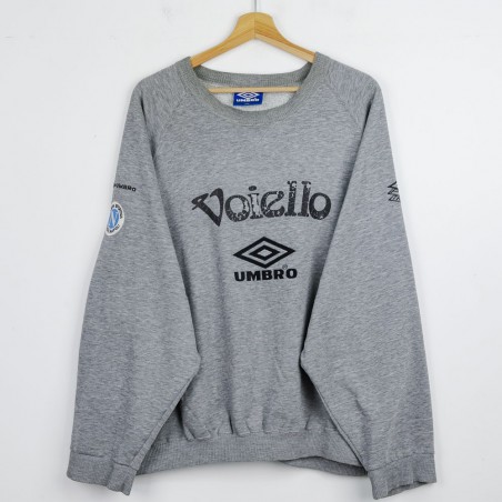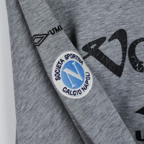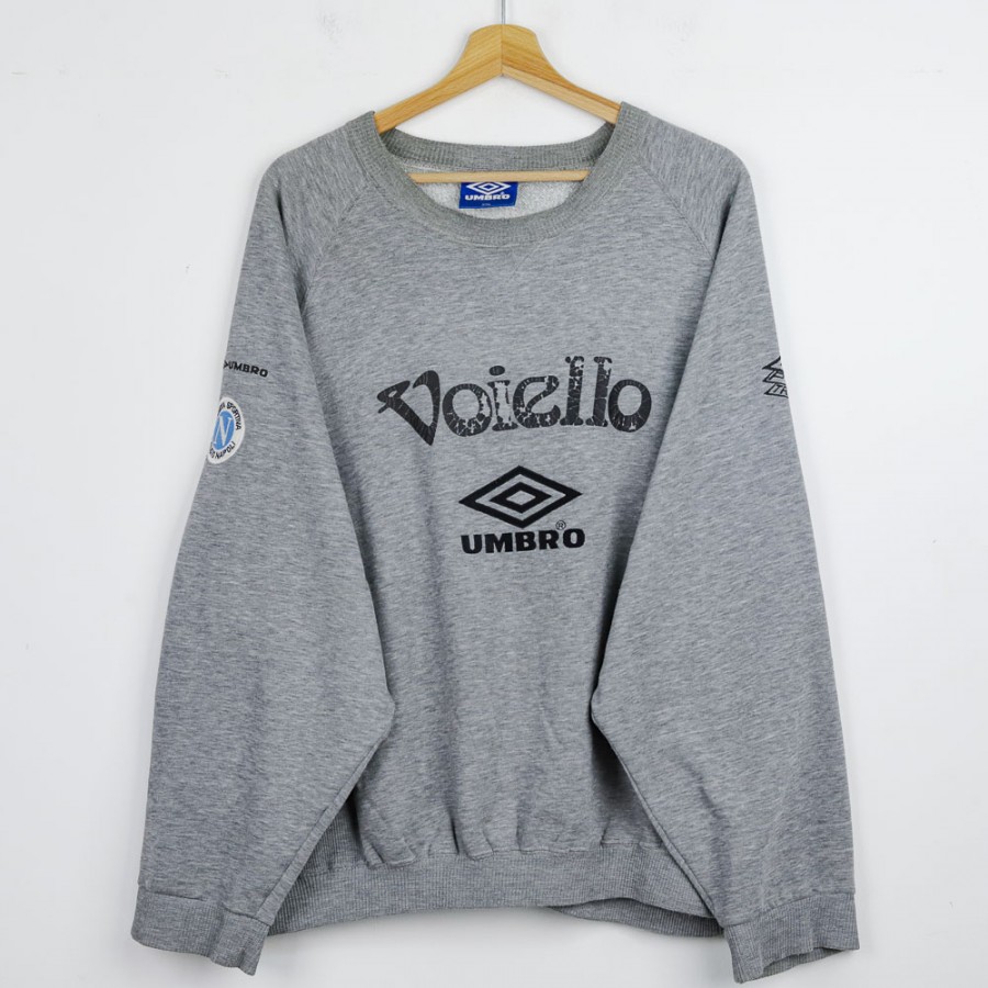 Completo da allenamento ufficiale della SSC Napoli per la stagione 1993/1994, prodotto dallo sponsor tecnico Umbro. La tuta, in color grigio, è composta da una felpa con girocollo e pantaloni abbinati. Sulla felpa spiccano il logo Umbro e lo sponsor commerciale Voiello stampati al centro, accompagnati dallo stemma della SSC Napoli sul braccio. I pantaloni presentano il logo Umbro stampato su una gamba. Taglia XXL, perfetta per i collezionisti e i nostalgici del calcio anni '90.