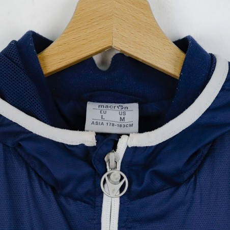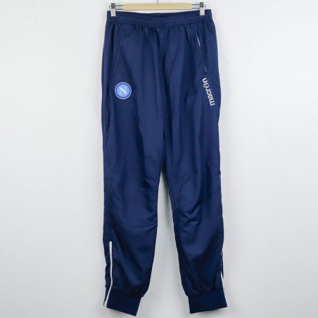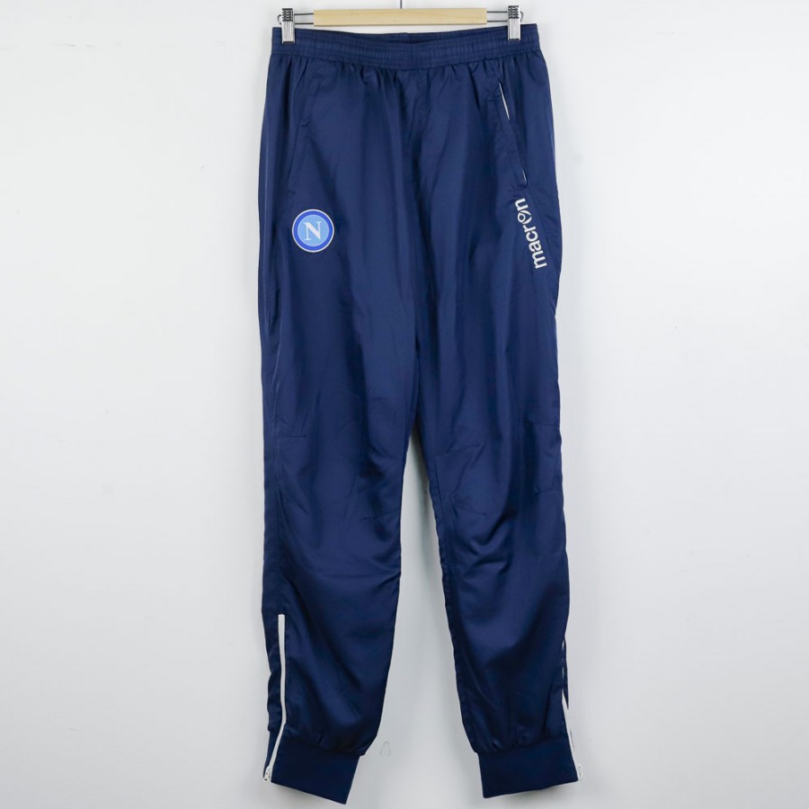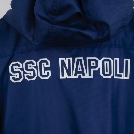 Tuta completa della SSC Napoli utilizzata nella stagione 2011/2012 per la UEFA Champions League, realizzata da Macron. La giacca con cappuccio presenta una colorazione blu navy con finiture bianche a contrasto, il logo Macron come sponsor tecnico e lo stemma SSC Napoli applicato sul petto. Il retro della giacca riporta la scritta “SSC Napoli” in bianco. I pantaloni coordinati, anch'essi blu navy, presentano il logo del club all'altezza della coscia sinistra. Taglia L.