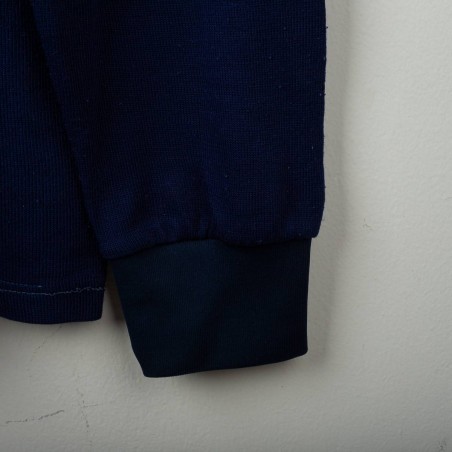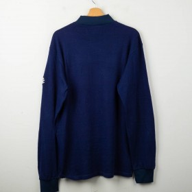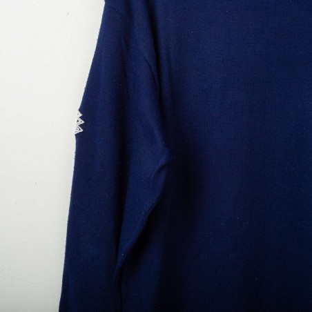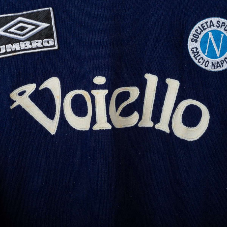 Maglia di allenamento del Napoli utilizzata nella stagione 1991/1992, realizzata da Umbro. Modello a manica lunga in lana, colore blu scuro, con colletto alto e polsini a costine. Logo Umbro e scritta "Voiello" applicati sul fronte, stemma della SSC Napoli cucito lato cuore. Patch "PRO TRAINING" Umbro sulla manica. Vestibilità regolare. Taglia XL.
