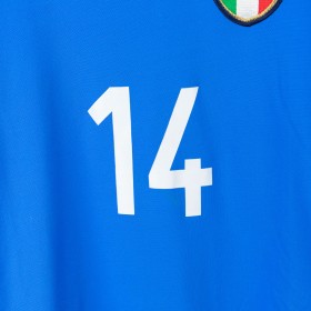 Maglia versione Kombat prodotta dalla Kappa per il mondiale coreano. Il tessuto della maglia è composto da 92% poliammide e 8% Lycra . Sul fronte della maglia è presente lo stemma della Federazione e sulle maniche sono presenti il logo della Kappa e le tre stelline. Presente anche il logo della competizione Worl Cup 2002 Korea Japan. Maglia personalizzata con il nome di Di Biagio ed il numero 14.