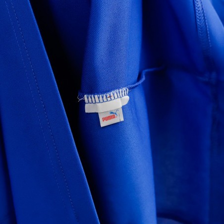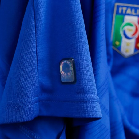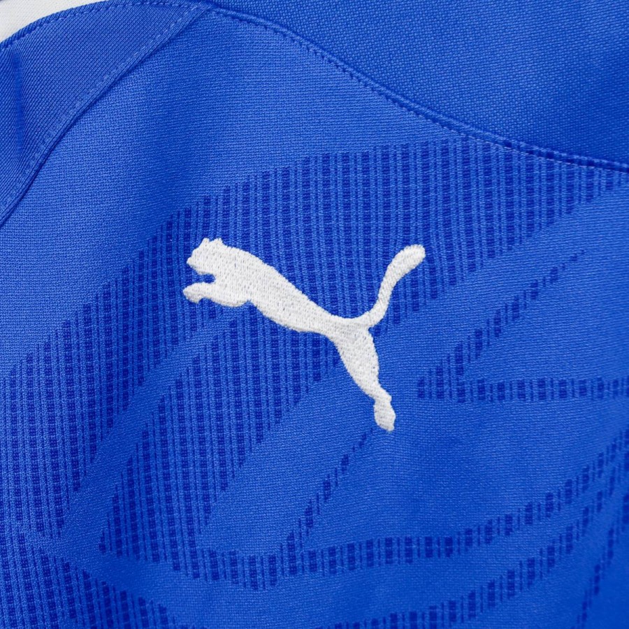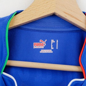 Maglia Home Italia Puma Cannavaro 5 2010 nella classica colorazione azzurra, con dettagli bianchi e colletto decorato dai colori della bandiera italiana. Lo stemma FIGC campeggia sul petto insieme al logo tecnico Puma, mentre sul retro troviamo il nome "Cannavaro" e il numero 5.