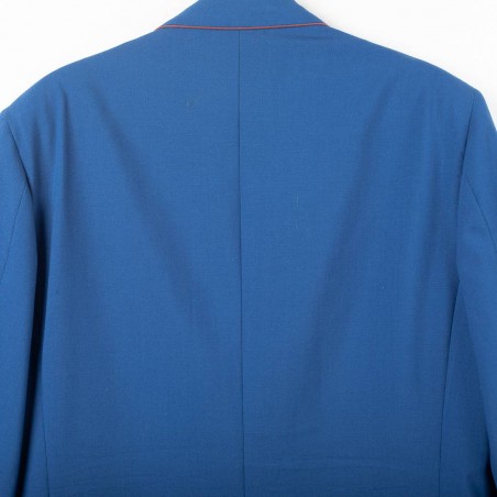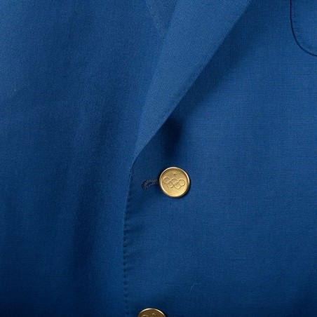 Elegante giacca ufficiale della Nazionale Italiana per i Giochi Olimpici, realizzata su misura da Valentino. Il capo è rifinito in un intenso azzurro con profili rossi sul colletto e presenta il celebre stemma CONI con i cinque cerchi olimpici e il tricolore italiano cucito sul petto. Un capo esclusivo simbolo dell'eccellenza sartoriale italiana e dell'orgoglio sportivo nazionale.