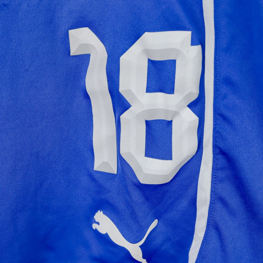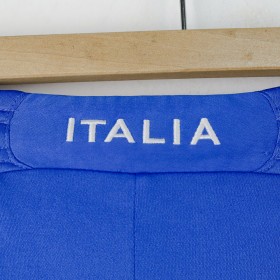 Pantaloncini ufficiali della Nazionale Italiana realizzati da Puma per la stagione 2012. Il capo presenta il logo tecnico Puma sulla gamba destra e lo stemma FIGC sulla gamba sinistra. Il numero 18 è applicato sul fronte. La taglia indicata è L. Un capo dal forte valore evocativo per tutti gli appassionati della maglia azzurra.