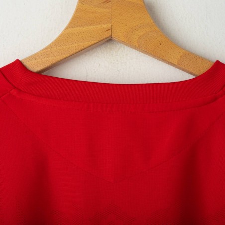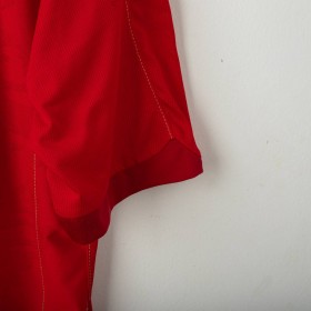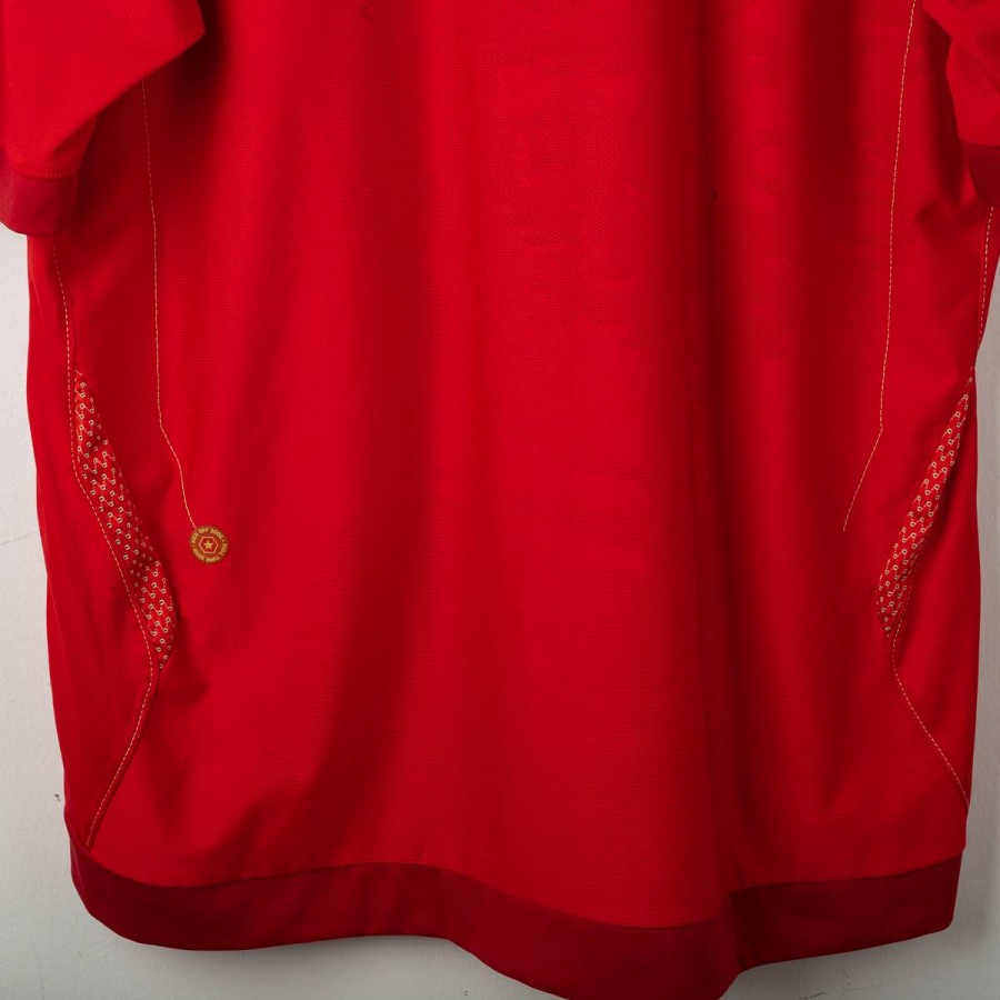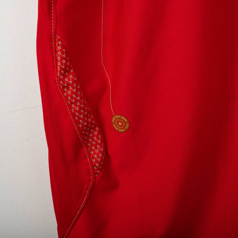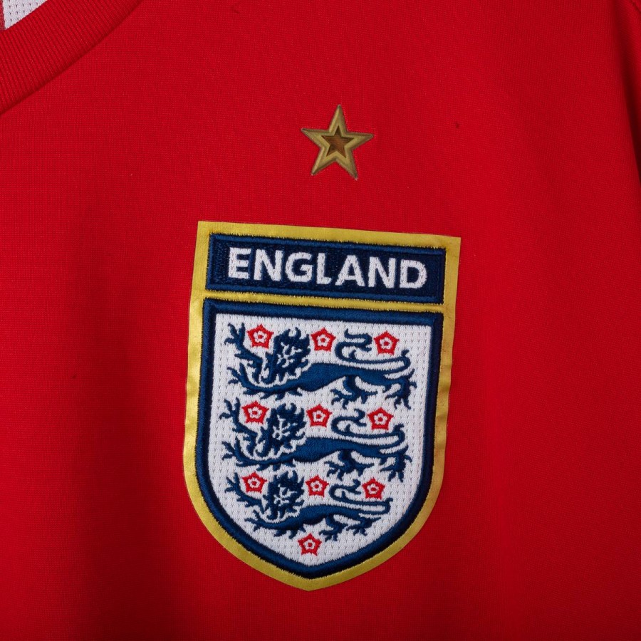 Maglia away dell'Inghilterra utilizzata durante la stagione 2006, prodotta da Umbro. Colore rosso con dettagli bianchi e logo Umbro ricamato sul petto. Stemma della nazionale inglese con stella superiore per celebrare il titolo mondiale del 1966, cucito sul lato cuore. Inserti laterali in mesh per una maggiore traspirabilità. Vestibilità ampia. Taglia XXL.