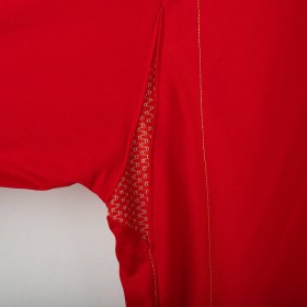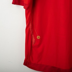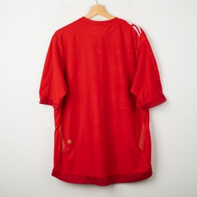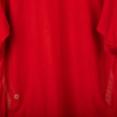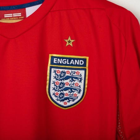Maglia away dell'Inghilterra utilizzata durante la stagione 2006, prodotta da Umbro. Colore rosso con dettagli bianchi e dorati, logo Umbro stampato sul petto destro e stemma della nazionale inglese lato cuore con stella superiore per commemorare il titolo mondiale del 1966, entrambi cuciti. Presente una grafica tono su tono sul retro. Inserti laterali in mesh per una migliore ventilazione. Vestibilità ampia. Taglia XXL.