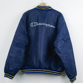 Giacca ufficiale del Parma per la stagione 1999/2000, realizzata dallo sponsor tecnico Champion. Questo capo è di colore blu navy con dettagli gialli e bordi a righe sul colletto, sui polsini e sul fondo. Sul petto sono ricamati lo stemma del club, il logo Champion e lo sponsor commerciale Parmalat. La parte posteriore presenta il logo Champion ricamato in grande. La fodera interna è imbottita e di colore giallo acceso. La taglia indicata è XL, rendendola ideale per tifosi e collezionisti che cercano un capo iconico di quegli anni.