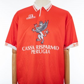 Maglia Home Perugia 2T Sport 8 1992/1993. Maglia casalinga con lo sponsor tecnico 2T Sport e quello commerciale CASSA RISPARMIO PERUGIA.