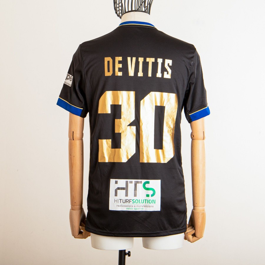 Maglia da gara Home del Pisa stagione 2020/2021 dell'attaccante Alessandro De Vitis. Sul fronte è applicato in gommina il logo Pisa sul lato cuore e al centro il gonfalone della città, mentre sul lato destro è ricamato il logo Adidas. Al centro è applicato il logo dello sponsor commerciale Cetilar, oltre a quello del secondo sponsor sul retro dove sono stampati anche lettering DE VITIS e numero 30. Sulla manica destra c'è la patch Serie BKT, mentre sulla manica sinitra c'è la patch stampata dello sponsor commerciale Despe. All'interno c'è l'etichetta cucita del prodotto Adidas.