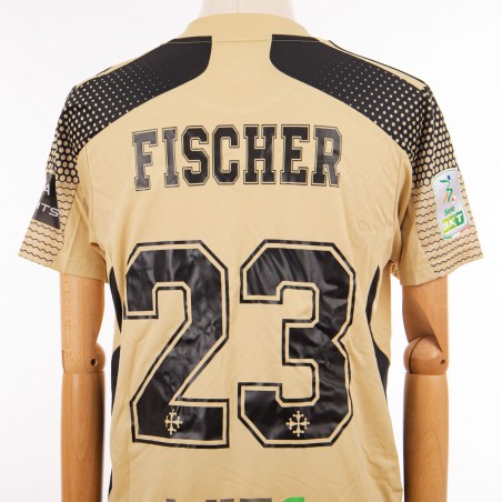 Maglia away Pisa realizzata dallo sponsor tecnico Adidas, in collaborazione con gli sponsor commerciali Synlab, Cetilarn e HTS per la stagione 2021/2022. Personalizzazione sul retro del prodotto col numero 23 Fischer. Modello conforme alle condizioni che si evincono dai reperti fotografici allegati. Taglia M
