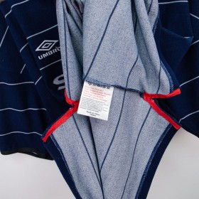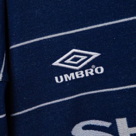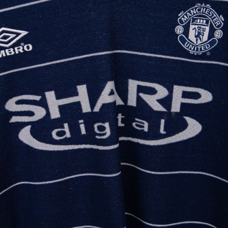 Maglia Away a maniche corte di colore blu del Manchester United prodotta dalla Umbro per la stagione calcistica 1999/2000.