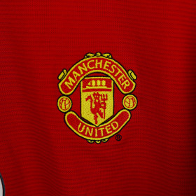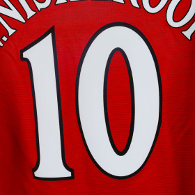 Maglia ufficiale home del Manchester United per la stagione 2000/2001, prodotta dallo sponsor tecnico Umbro e con sponsor commerciale Vodafone. Il design classico presenta il tradizionale colore rosso con dettagli neri e bianchi su colletto e maniche. Sul petto, il logo Umbro è ricamato sul lato destro, mentre lo stemma del Manchester United è applicato sul lato cuore. Al centro, lo sponsor Vodafone spicca in bianco. Sul retro, la personalizzazione V. Nistelrooy con il numero 10 in bianco bordato di nero.