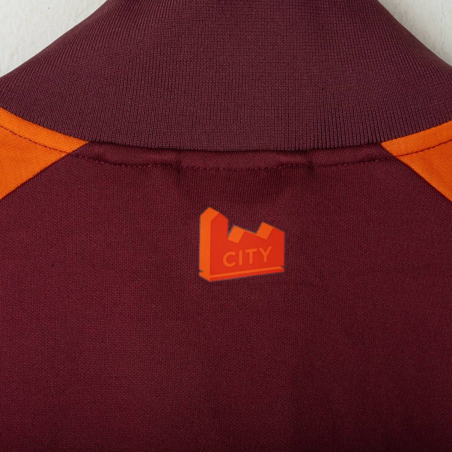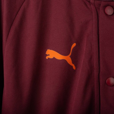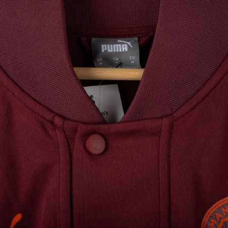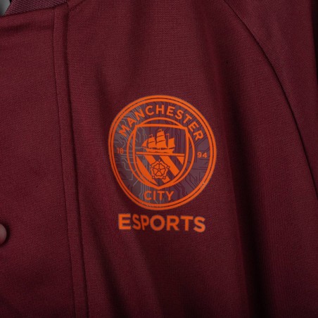Giacca ufficiale Esports del Manchester City per la stagione 2023/2024, prodotta da Puma. Il modello presenta una base bordeaux con dettagli arancioni a contrasto su maniche e spalle. Sulla parte frontale troviamo il logo Puma e il crest Esports del City, entrambi in arancione. Chiusura con bottoni a pressione e tasche laterali. Taglia M. Un capo moderno, perfetto per i fan della squadra e per gli appassionati di Esports.