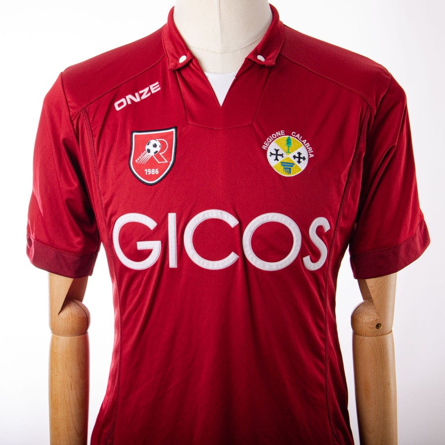 La maglia, prodotta da Onze, è di colore rosso e a manica corta. Il colletto a polo porta due bottoncini a pressione. Sulla parte frontale è ricamata la patch Reggina sulla destra ed il logo della Regione Calabria sulla sinistra. Al centro, applicato in flock bianco, lo sposnor commerciale Gicos. Numero 10 in plastica leggera sul retro.
