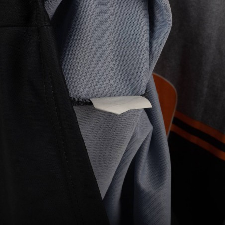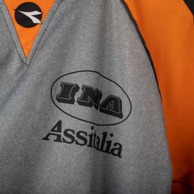 Maglia da allenamento dell'AS Roma utilizzata nella stagione 1997/1998, prodotta da Diadora. Colore grigio, arancione e nero con colletto nero. Logo Diadora e sponsor INA Assitalia stampati in nero sul fronte e sul retro. Scritta “as roma” in grande stampa arancione sul petto e fascia orizzontale nera con doppia riga arancione. Stemma AS Roma ricamato sul lato cuore. Vestibilità regolare. Taglia M.