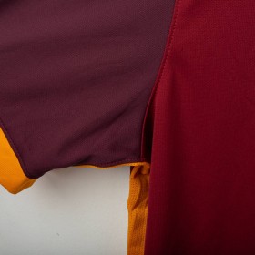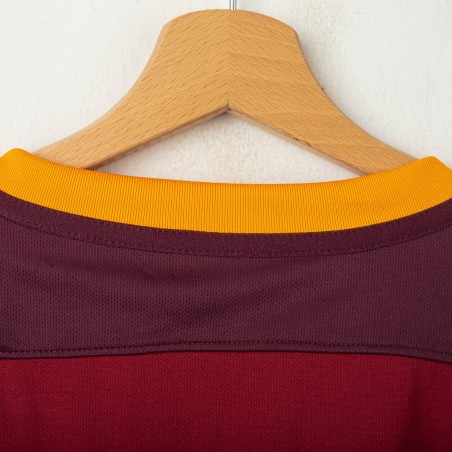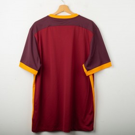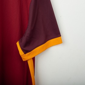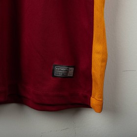 Maglia Home Roma Nike 2015/2016 realizzata dallo sponsor tecnico Nike, con logo swoosh sul petto e il nuovo stemma della Roma adottato dal club a partire dal 2013. Il colore principale è il classico rosso porpora con inserti giallo oro su colletto, maniche e fianchi. La taglia è XL.