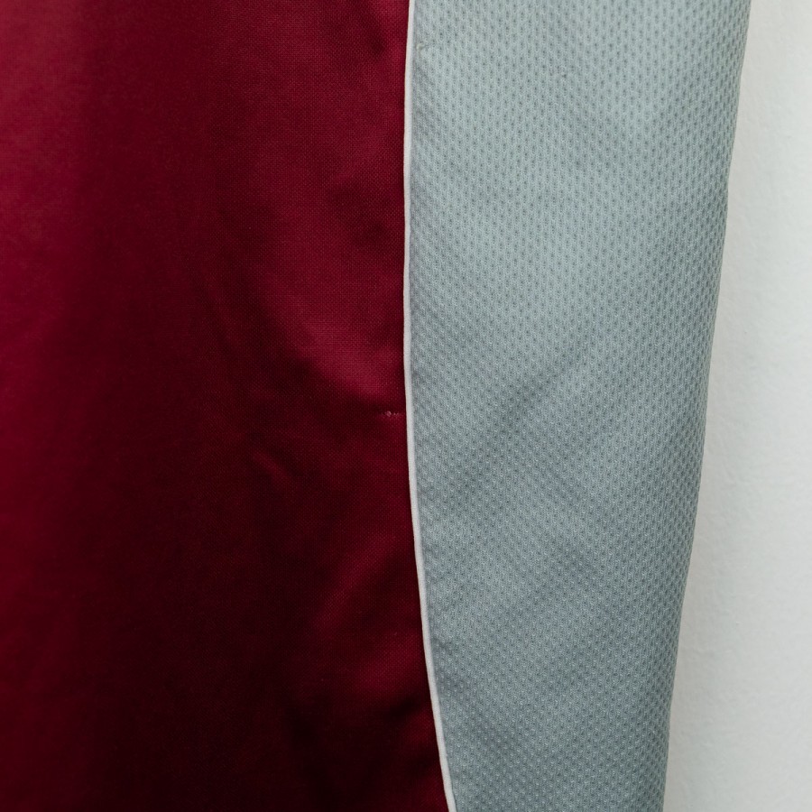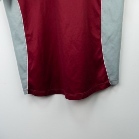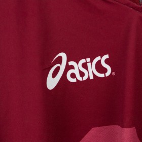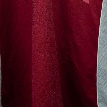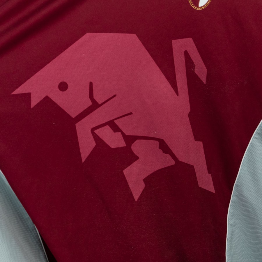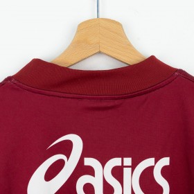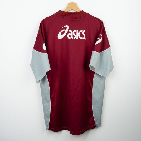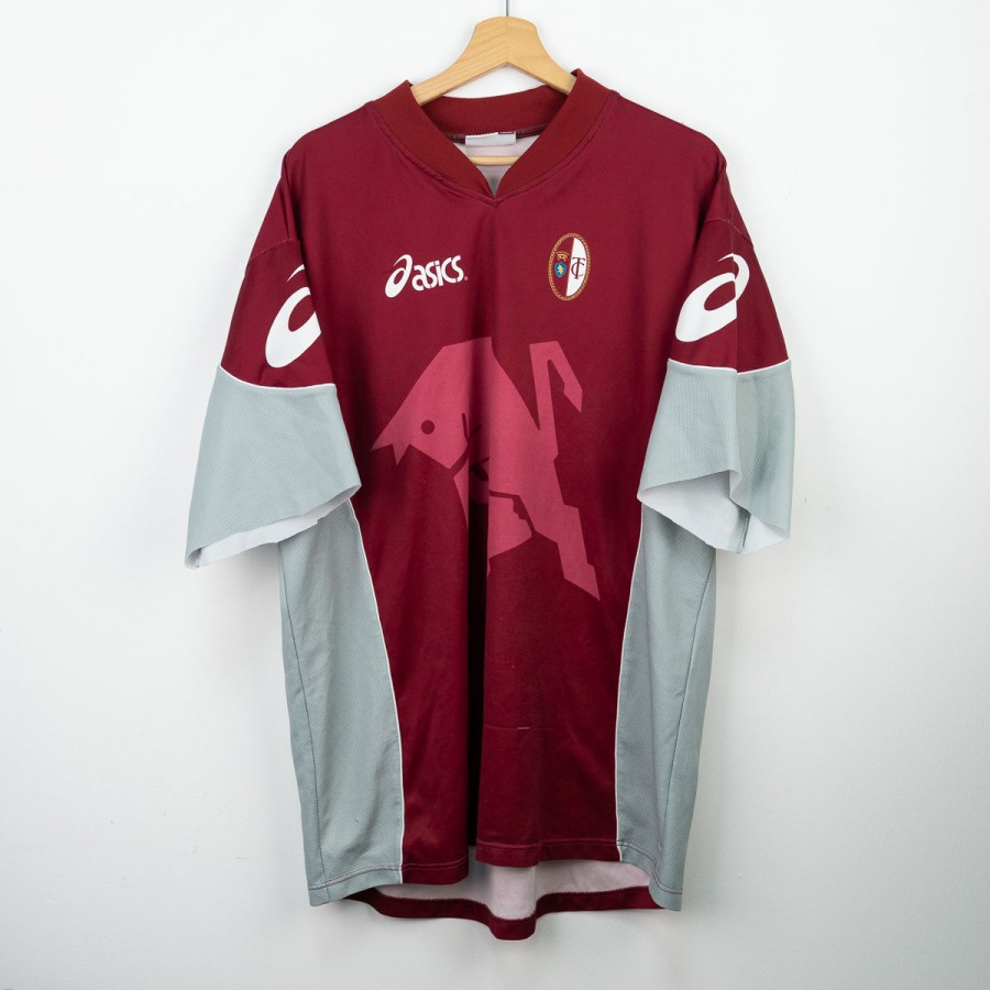 T-Shirt Allenamento Torino Asics 2001/2002, realizzata dal brand giapponese con il classico design granata arricchito da inserti grigi sui fianchi e sulle maniche. Lo sponsor tecnico Asics è presente sul fronte, sul retro e sulle maniche, mentre sul petto campeggia lo stemma del Torino e la figura stilizzata del toro, simbolo del club. Taglia L.