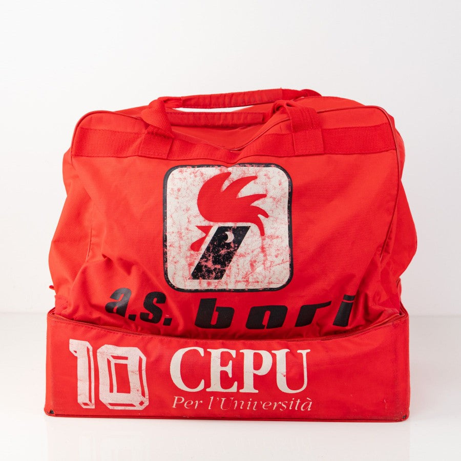 Logo SS Bari. Sponsor commerciale Cepu e numero 10 impressi sul portascarpe. Sponsor Adidas
