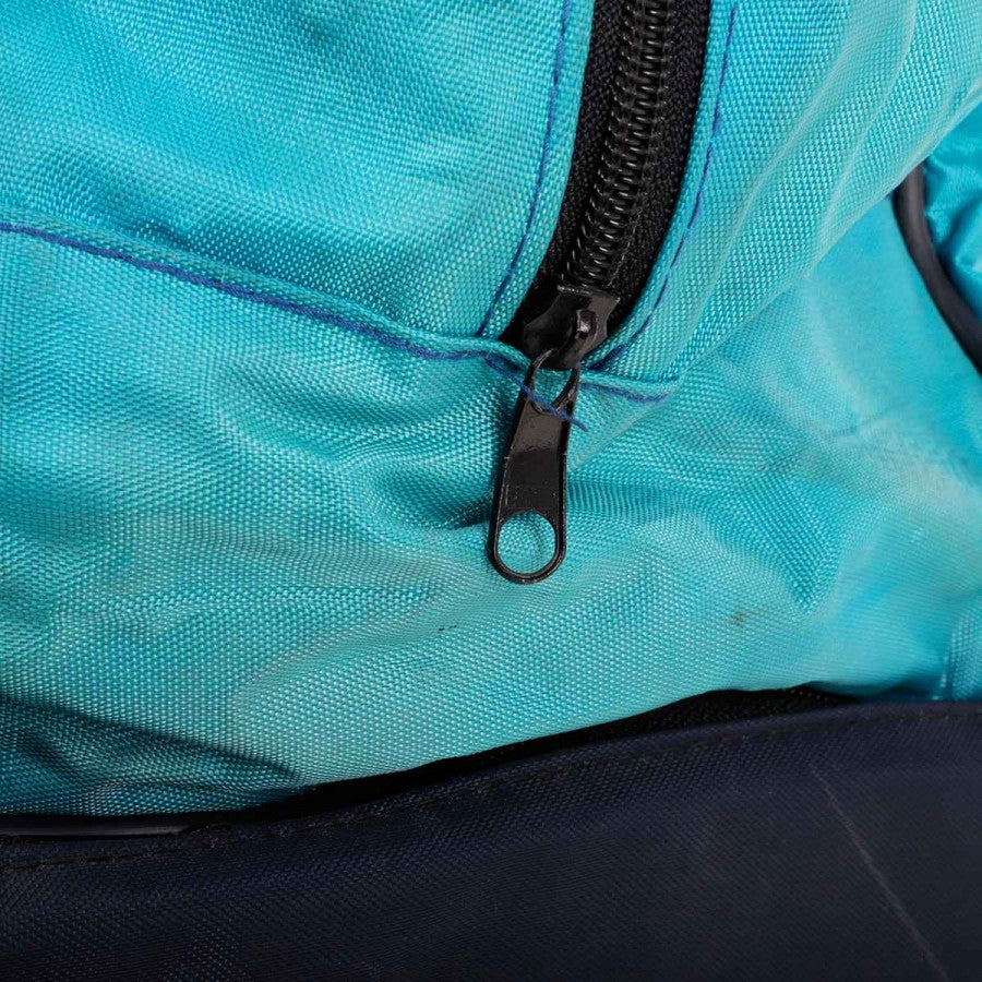 Borsone ufficiale del Calcio Napoli della Lotto con Sponsor Record Cucine verniciato in bianco. Colore azzurro acqua, il borsone riporta il logo S.S.C Napoli e Record Cucine in alto sulla parte centrale, sul portascarpe lo sponsor tecnico Lotto.