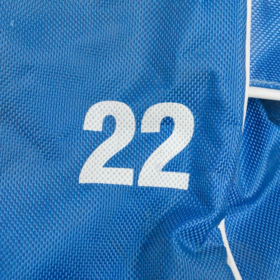 Borsone con doppio fondo porta scarpe, con chiusura a zip e manici. Applicazioni serigrafiche dello sponsor tecnico Asics, del lettering e dello stemma della squadra. Numero 22 impresso